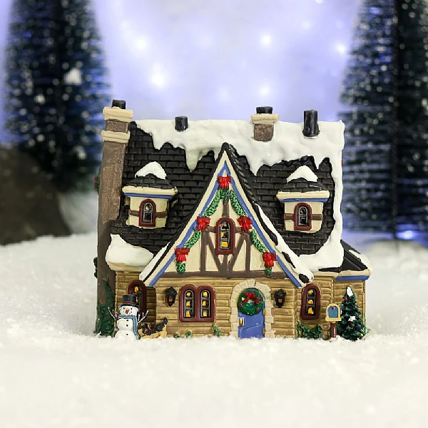 - A snowman greets visitors, and the lighted windows bring a beautiful warmth to your Lemax village