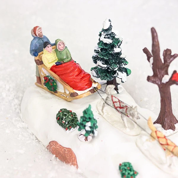 - The Dog Sledding Afternoon ornament from Lemax is part of the Vail Village collection