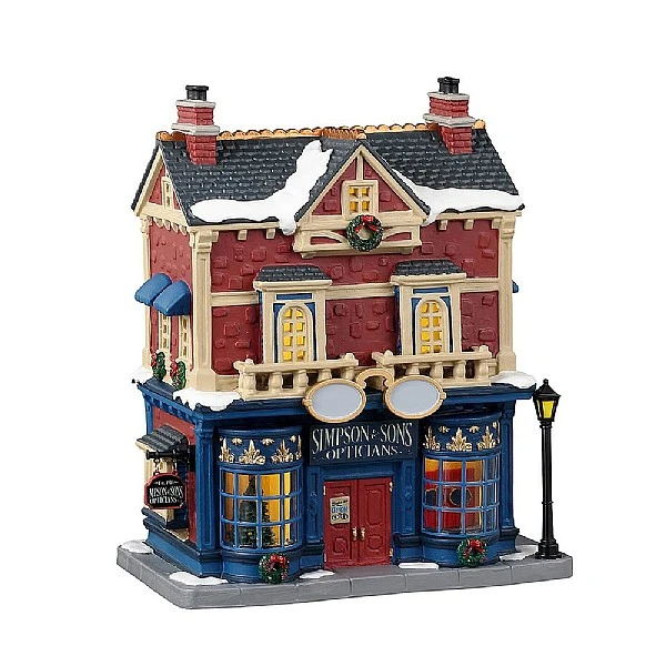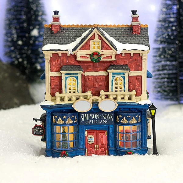 - The Simpson & Sons Opticians illuminated ornament from Lemax is part of the Caddington Village collection