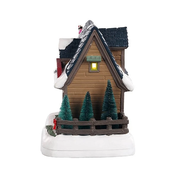 - Next to this A-frame log cabin is an attached trailer with a hot cocoa window.