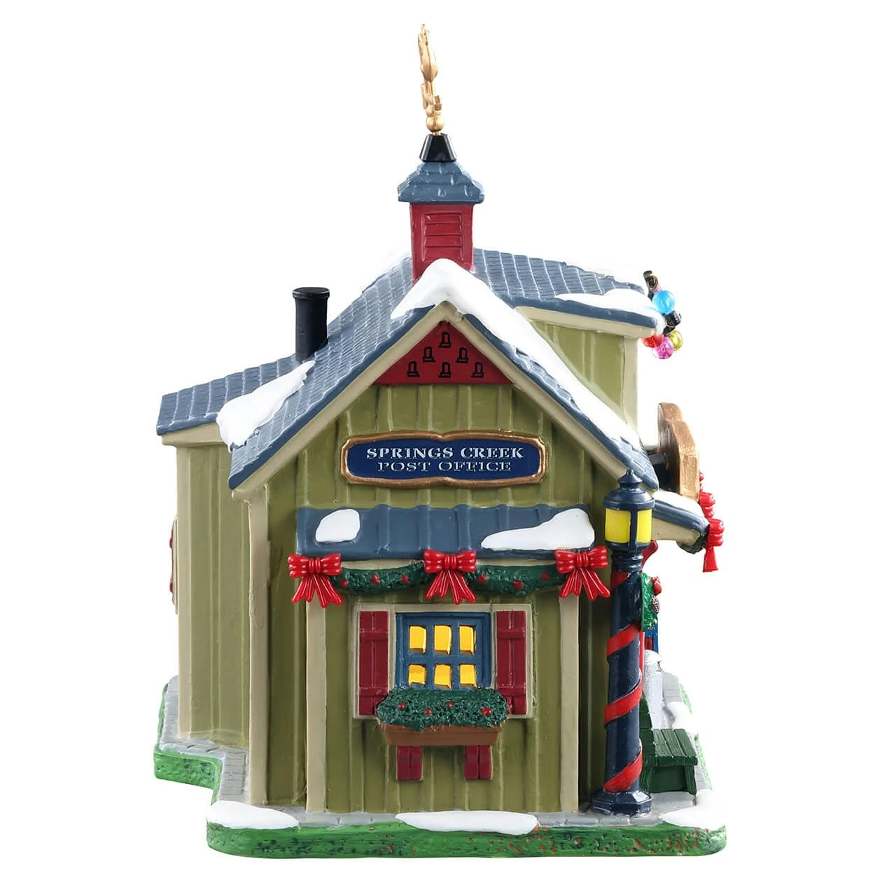 The Springs Creek Post Office is busy getting ready for the holiday season. This small office is decked out with Christmas lights and garlands. They’ve even decorated the lamp post. There’s an outside area with PO boxes, a stamp vending machine, and a window for purchasing postage. There’s even a dedicated mailbox for mailing letters to Santa. On the side of the building, there’s a parcel pick-up window, a scale, and a back-door entrance.
