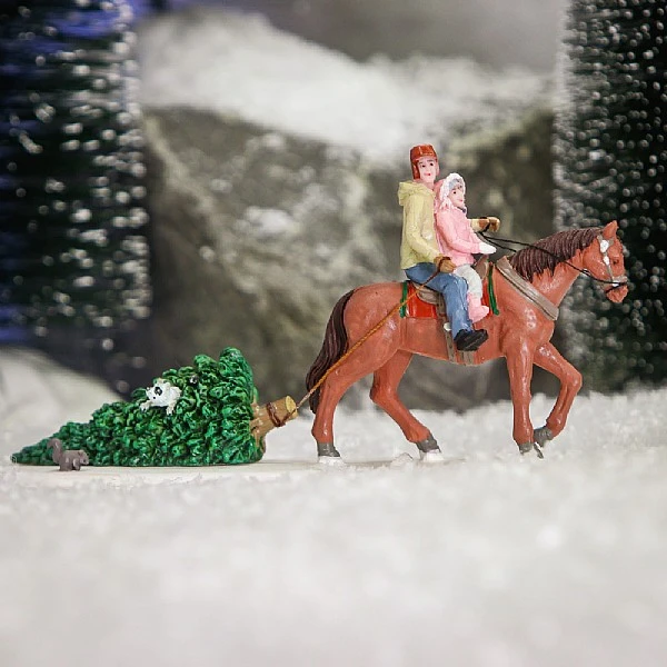 - This is the best way to get deep into the forest to find the perfect Christmas tree. The thumping of the hooves and softly falling snow make a magical scene while the father and daughter team look forward to getting home, putting up the tree and decorating it. Hopefully, the little stowaway in the tree hops off at the next stop though, or the family cat may go crazy